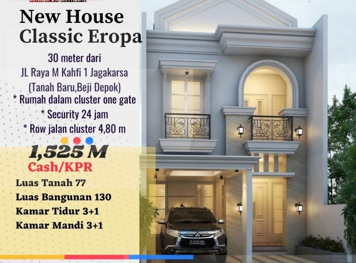 Rumah classic eropa dalam cluster 30 m dari jl m kahfi 1 jagakarsa