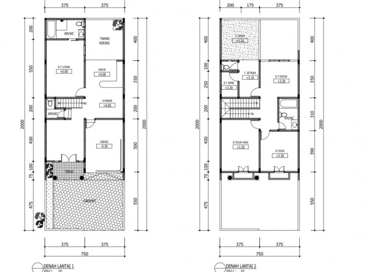 * Luas tanah : 150 m² ( 7,5 x 20 )